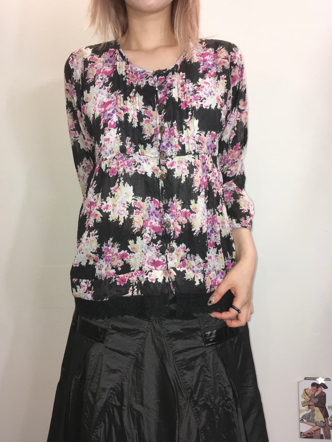 -jpn vintage black vintage flower blouse •Brand Atonh&house •size 어깨 38 가슴 62 소매 47 총장 63 •fabric 코튼100 🤍0476