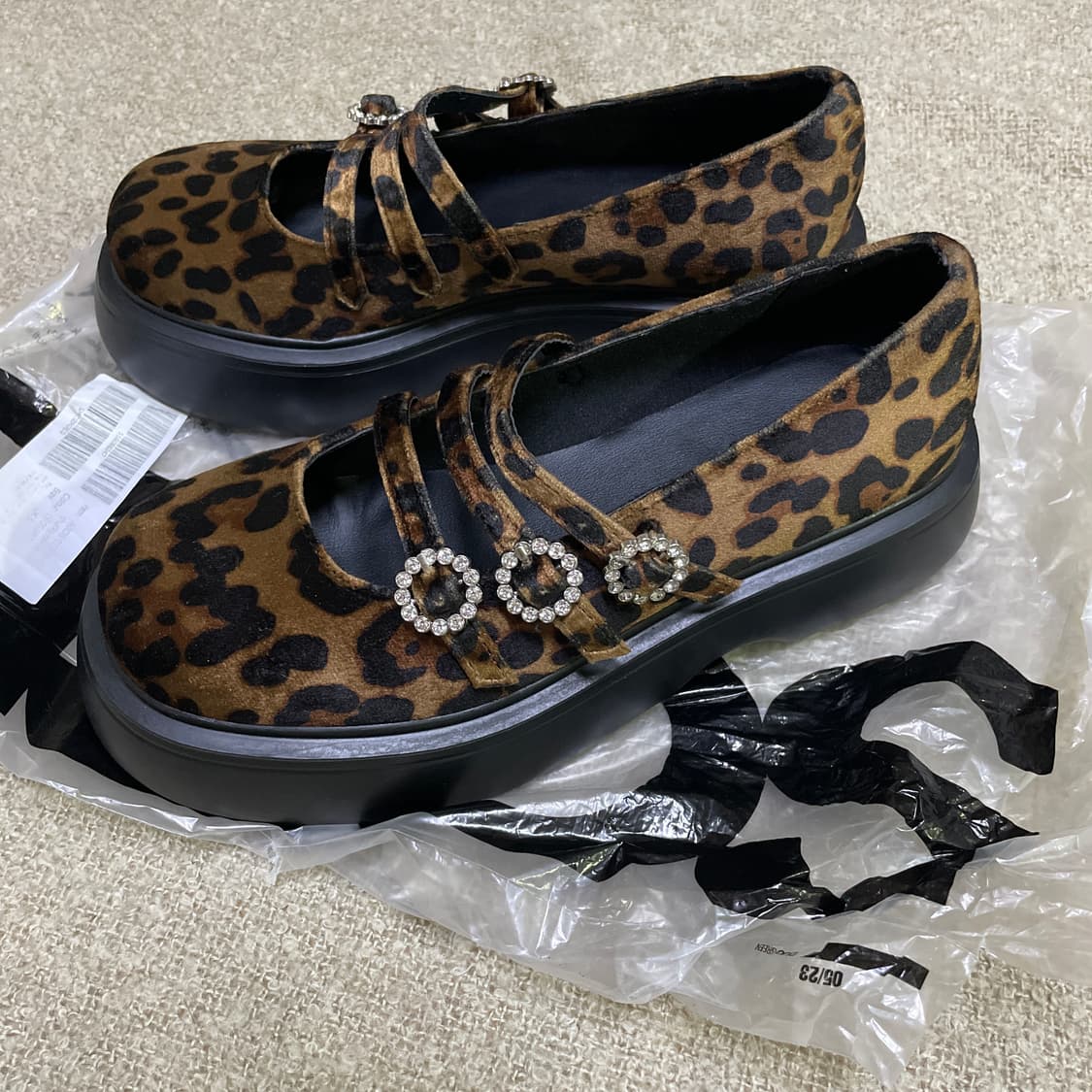 새 상품 / 사이즈 uk5 240 (칼발은 245도 맞아요) 굽 5cm 면 원단에 프린트가 아니라 벨벳 소재입니다! 신으면 귀여워요 같이 담겨서 왔던 봉투에 넣어서 보내드립니다! *이체만 가능