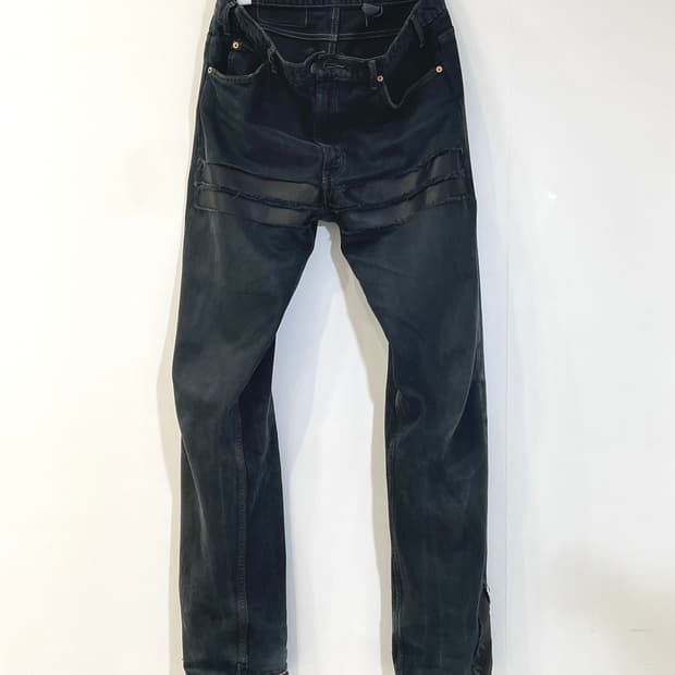 PPFM 커브드 3D 포켓 데님팬츠 - 펑크한 무드의 의류를 제작하는 일본발 브랜드 PPFM의 커브드 진 - 약간의 사용감 외 전반적 양호한 컨디션 - 스판 혼방으로 편한 착용감 33인치(단면42) / 허벅지31 밑위25 총장107 밑단20 250721