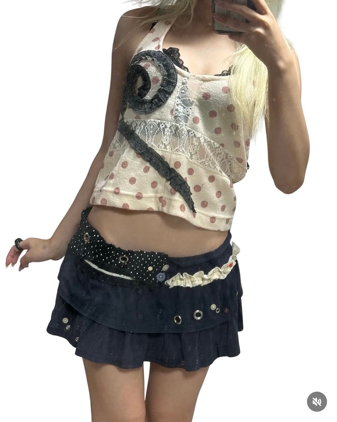 Vtg y2k 키치 홀터넥 프릴 슬리브리스