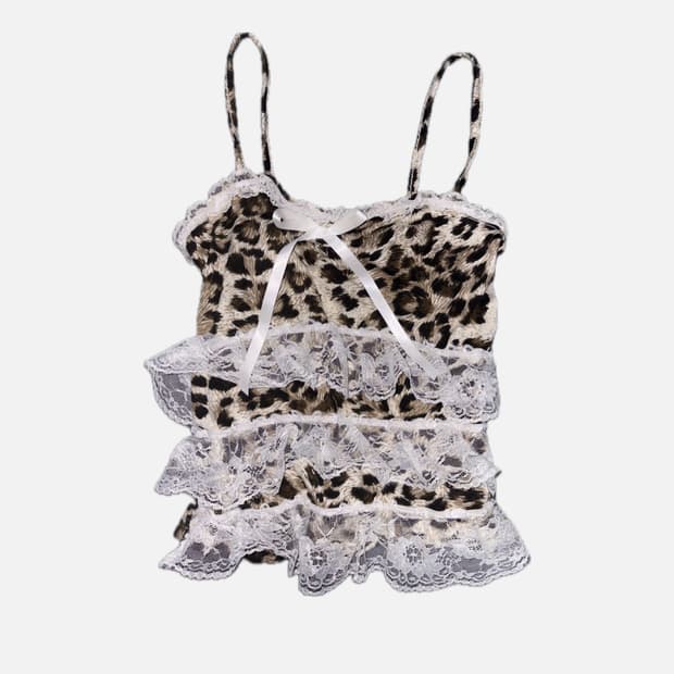 00‘s 갸루 와투케 지브라 레이스 레이어드 세트