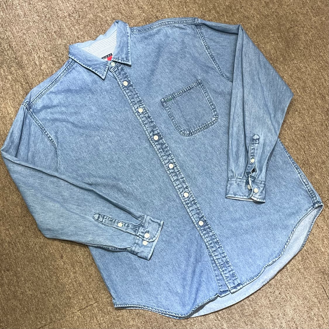 상품명 / (XL) 90s Tommy 올드 타미 데님 셔츠 Price / 65,000 (배송비 기본 : 3,000원 / 제주,도서 산간 : 6,000원) Size / (XL) 어깨 56, 가슴 65.5, 소매 64, 총장 83 Condition / 9 90년대 생산된 올드 타미입니다 좋은 상태 유지중입니다! 빈티지 특성상 교환,환불이 불가 합니다. 신중한 구매 부탁드립니다.