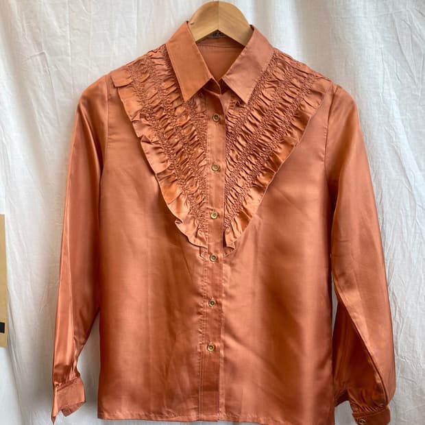 빈티지한 핑크색이 매력적인 블라우스입니다. 폴리 100% 실측사이즈 66반까지 추천 어깨 38.5 가슴 52.5 팔길이 58 암홀길이 21 밑단단면 52 총장/어깨라인기준 63