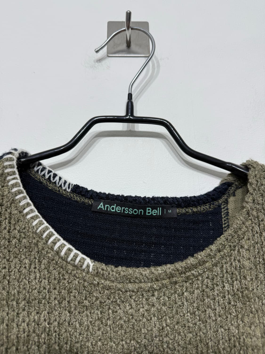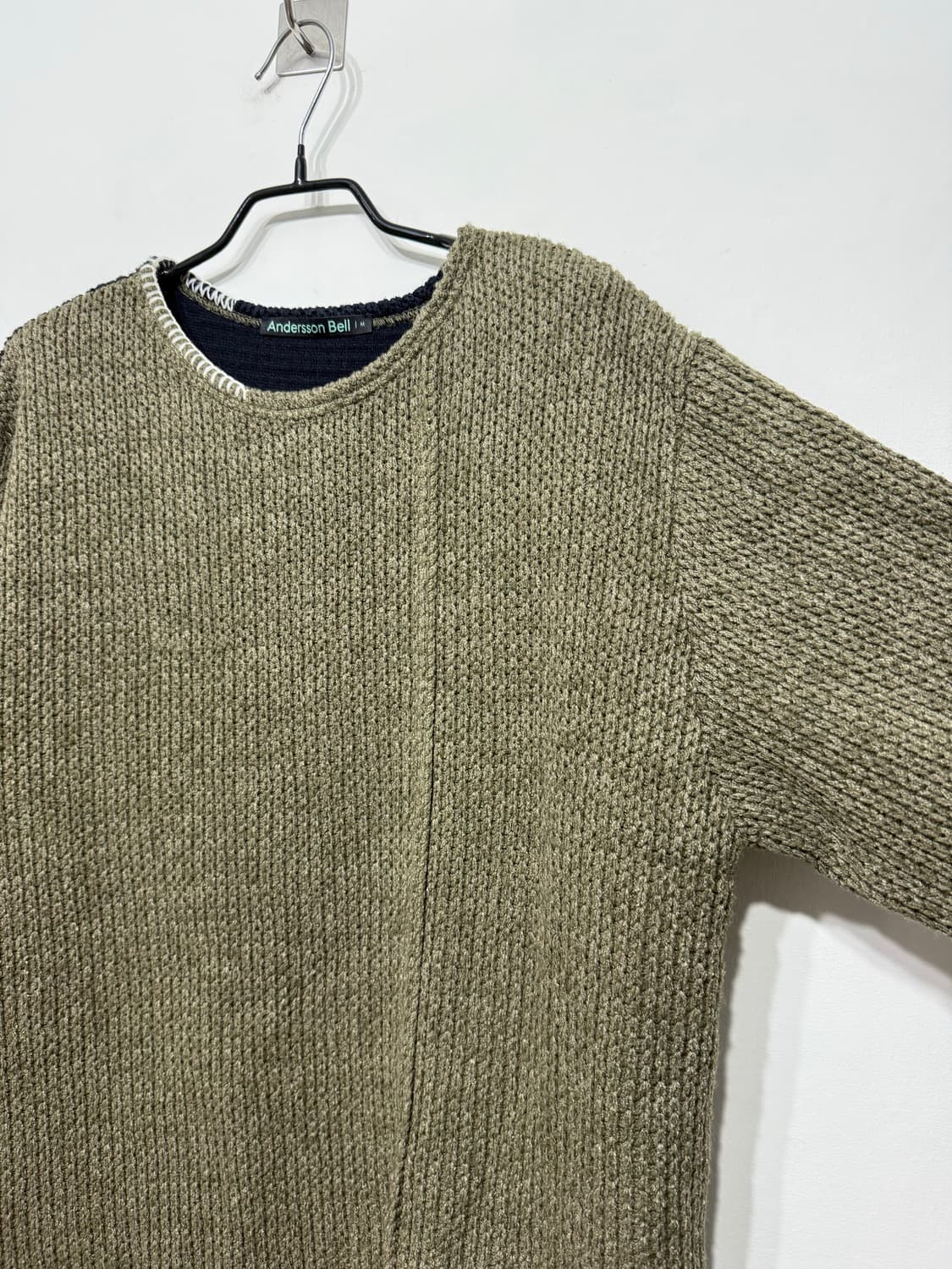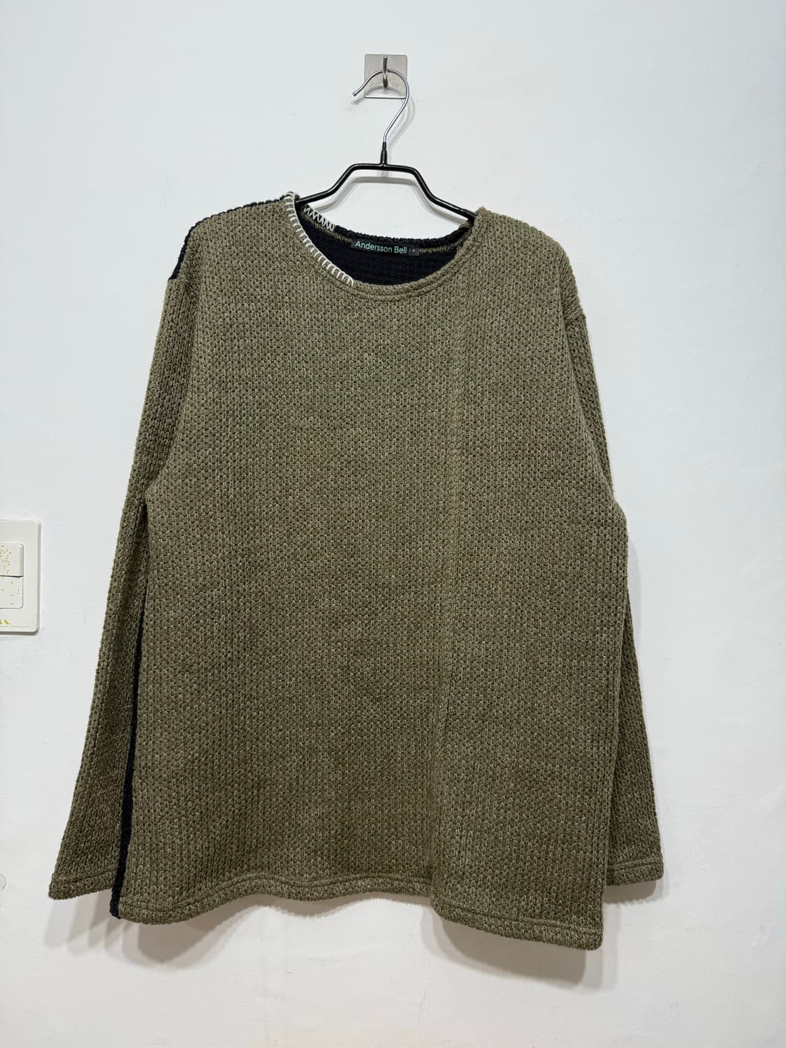 앤더슨벨 니트 사이즈 M 실측 어깨 48 가슴 58 소매 62 기장 69 앤더슨벨 콘트라스트 보트넥 니트 M사이즈입니다. 독특한 짜임과 색감이 돋보이는 제품입니다. 블랙 색상으로 배색 포인트를 주어 더욱 스타일리쉬합니다.