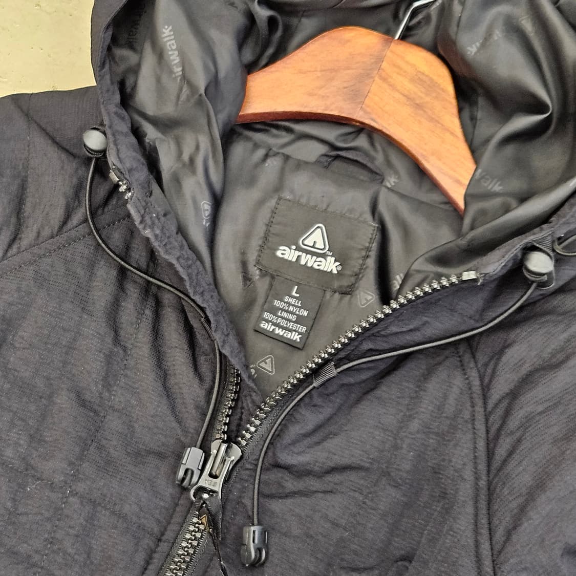 에어워크 경량 패딩 점퍼 입니다 나일론 소재로 제작된 탄탄한 원단감 입니다. 블랙 컬러구요. 훌륭한 컨디션 입니다. 표기사이즈 맨즈 L, 실측 L~XL 추천 드려요. 모델 - 182/85 ▪︎가슴 : 61.5cm ▪︎소매 : 81cm(어깨포함) ▪︎총장 : 76cm