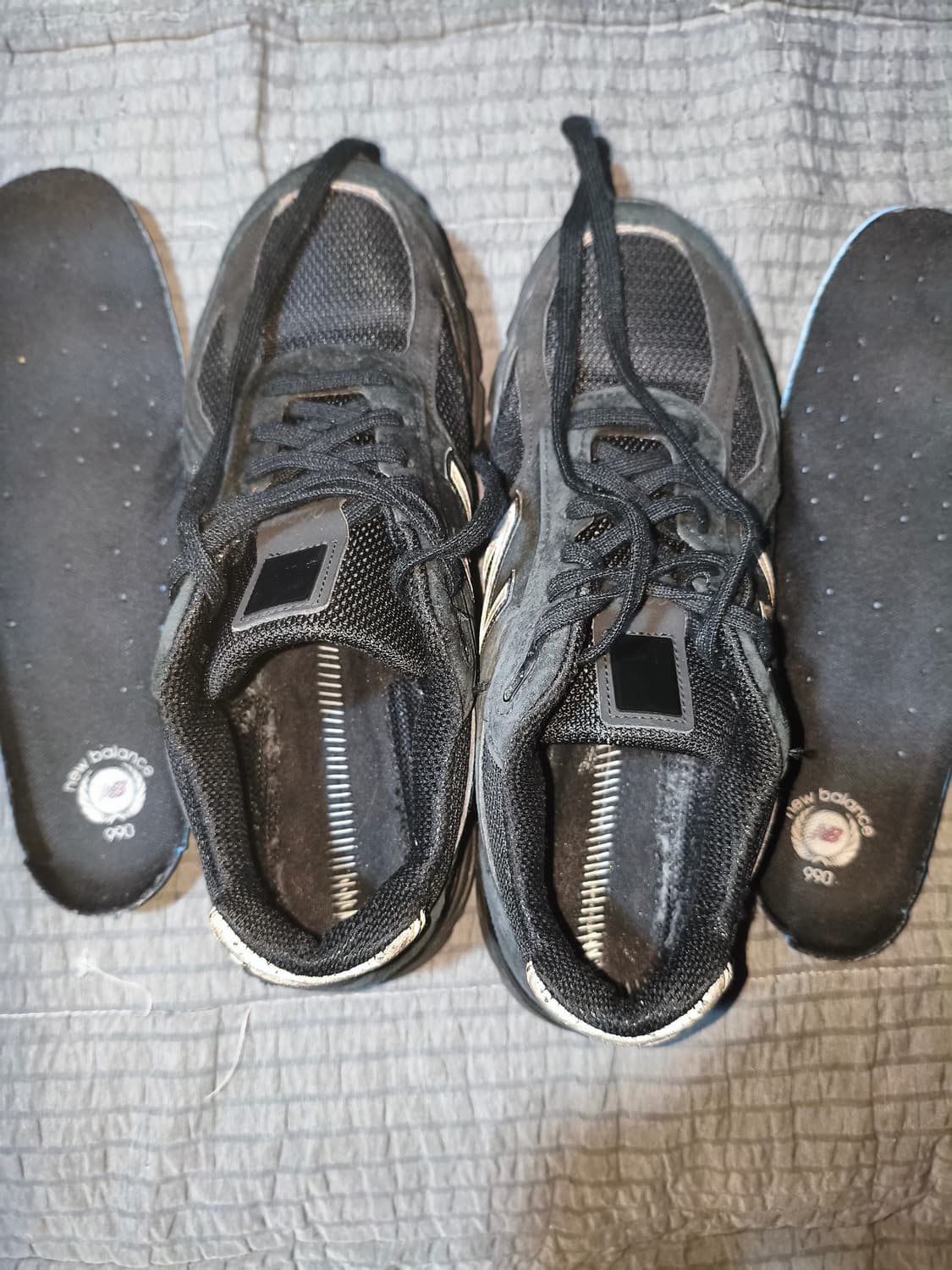 뉴발란스 990v4 트리플블랙 260사이즈입니다. 사용감은 조금 있지만, 깔끔하게 신으실 분이 가져가시면 좋을 것 같아요. 평소 260신으시는 분께 추천드립니다. 문의 없으시면 바로 안전결제해주시면 됩니다! 플래쉬 터트려서 최대한 찍었습니다. 스웨이드 자연스게 빈티지 하게 잘 빠졌습니다. 뒷축까짐 구겨짐 밑창 깔창 까짐닳음 X 신발단품만 있습니다. 전투화 X 에눌문의 X