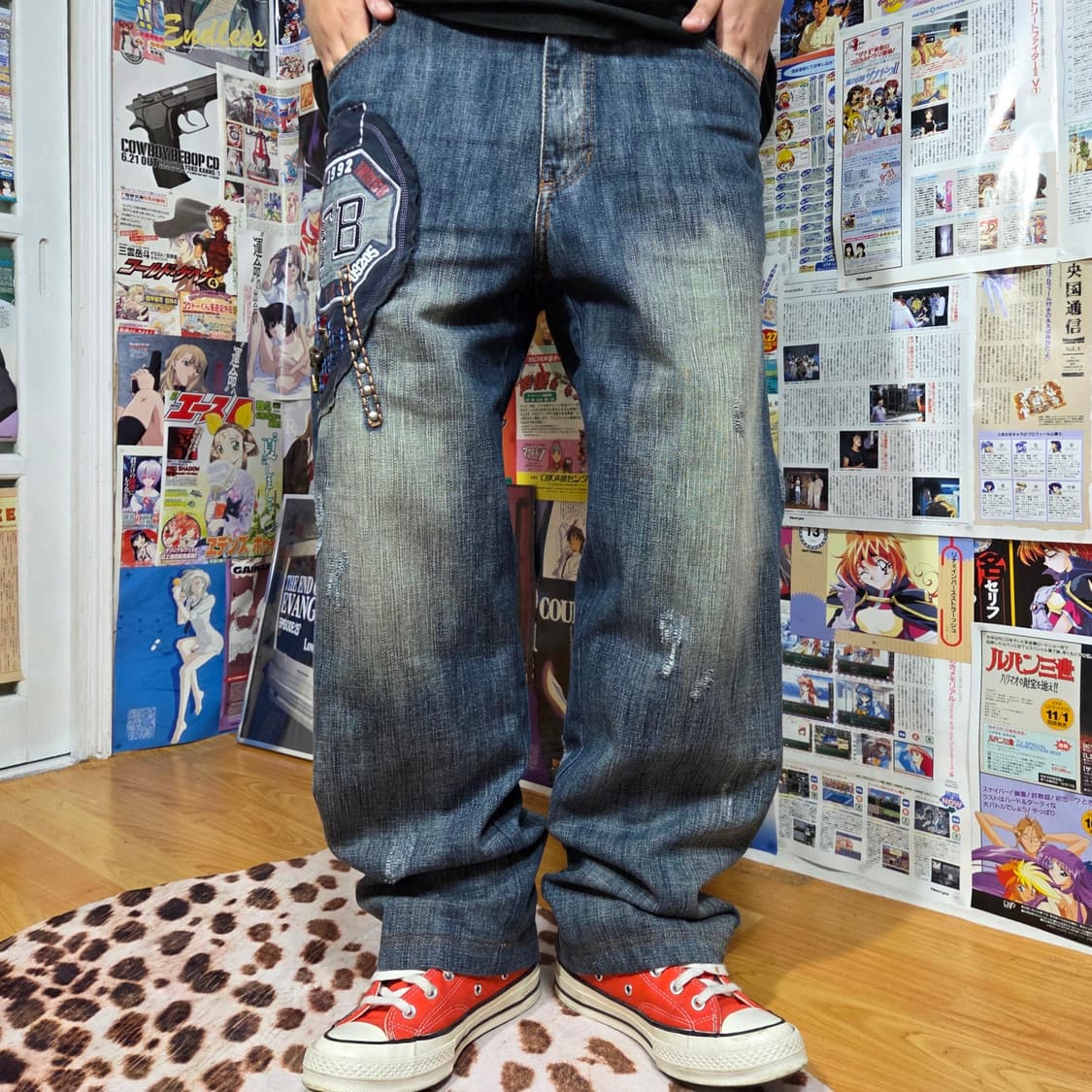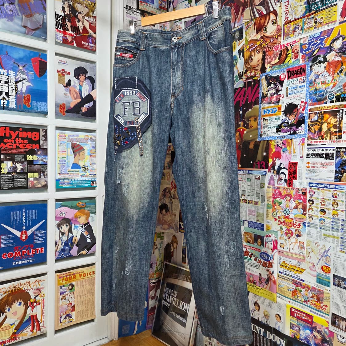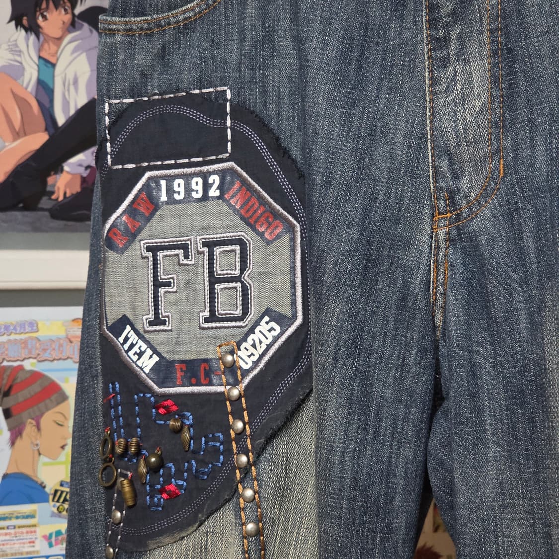 후부 스터드 파츠 워싱 데님 팬츠 . -FUBU사의 스터드 데님 팬츠 입니다. 전체적으로 들어간 빈티지 워싱과 전면 스터드, 파츠 디테일이 유니크한 제품으로 오리엔탈 무드와도 잘 어울리는 데님 입니다. . Size : 추천 사이즈 ~31INCH . 허리: 43 밑위: 35 허벅지: 33 밑단: 22 총장: 105 . Condition : 8.9/10 . Price : 4 . * 빈티지 특성상 교환 환불은 어렵습니다. * 사이즈 CM단위이며 2~3 오차가 날수있습니다. * 혹여나 미처 발견못한 미세오염 있을수 있으니 예민하신 분들은 피해주시기 바랍니다! . L.0925