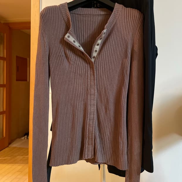 슬림 골지 니트 가디건 브라운 딱붙핏