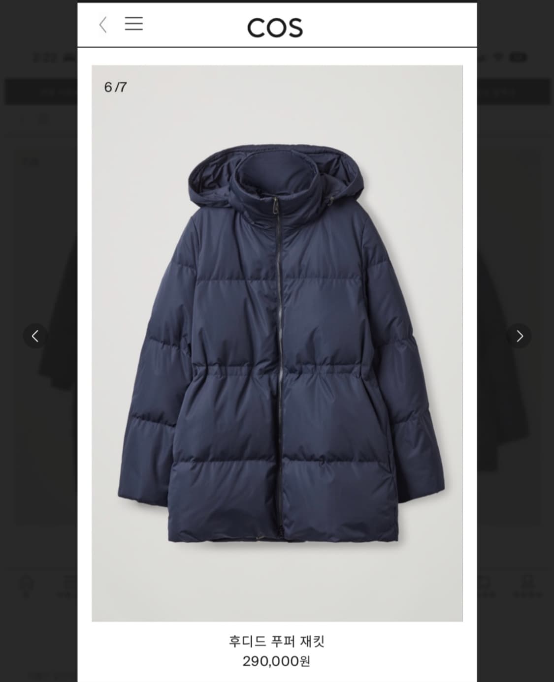 • cos 코스 신형 후디드 푸퍼 재킷 덕다운패딩 S