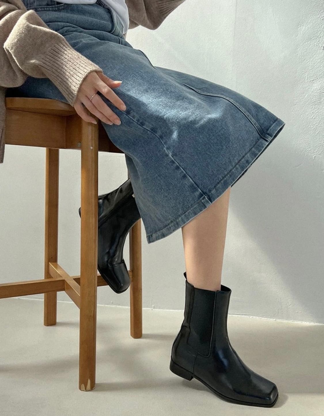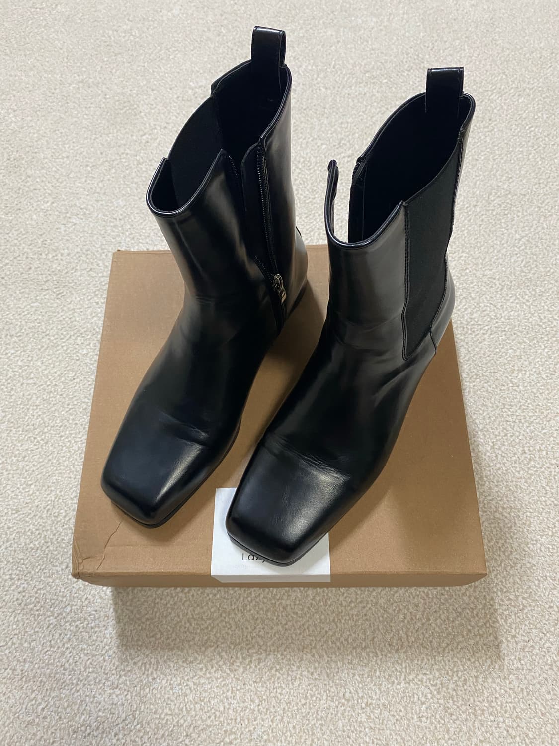 레이지앤 스퀘어 첼시부츠 블랙 색상으로 다양한 스타일에 매치하기 용이합니다 사이즈 -240 / 뒷굽 2.5cm 1회 착용 상태 좋음
