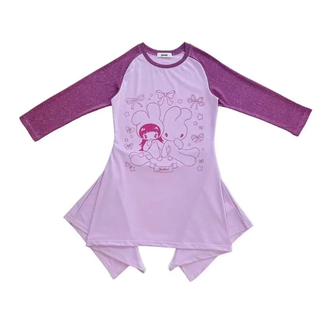 허그유어스킨 엔젤 패치 레글런 드레스 화이트 핑크