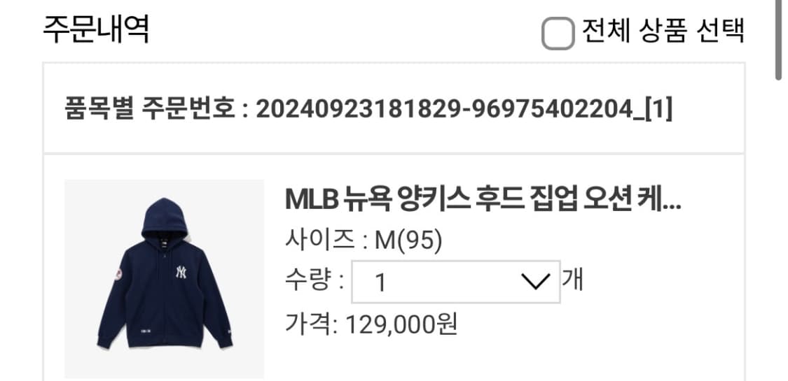MLB 뉴욕 양키스 블랙 후드집업 M ✨️정품✨️