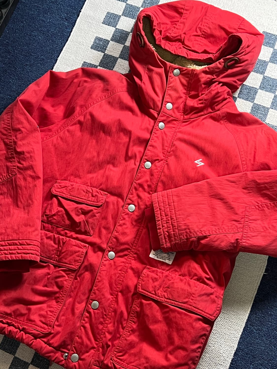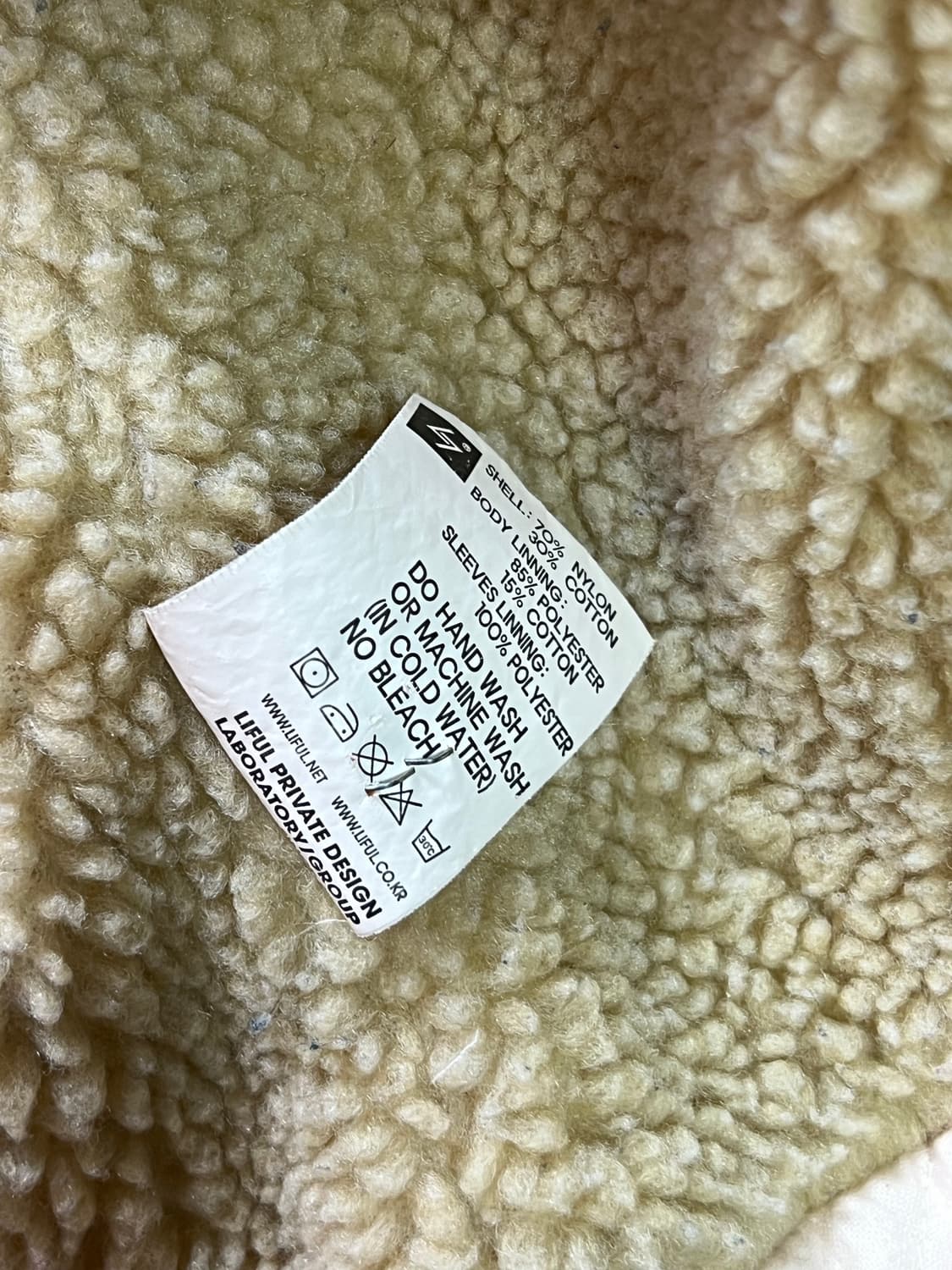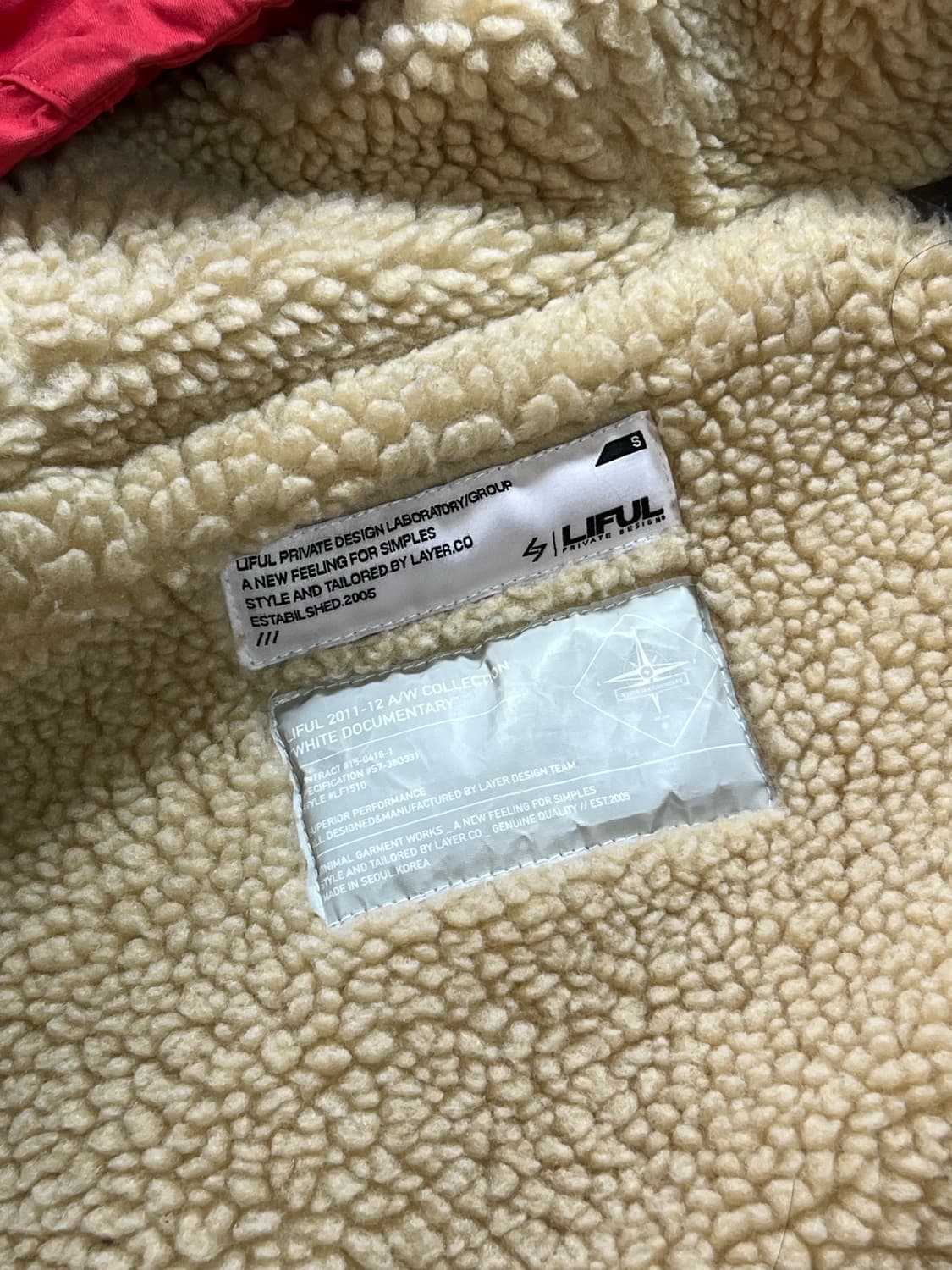 국내 스트릿 브랜드 라이풀의 쉐르파 후드 자켓입니다. 주머니가 많아 수납 좋고 디테일이 많아요. 초겨울까지 따뜻하게 입을 수 있습니다. 하자 없으나 소매 끝부분 물빠짐 색바램등 약간의 사용감 존재합니다. 표기사이즈 S로 95정도 사이즈감입니다. 가슴단면 : 54 총장 : 66