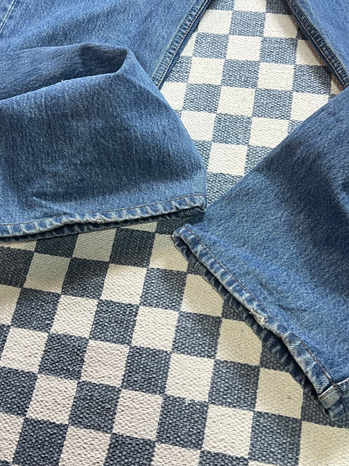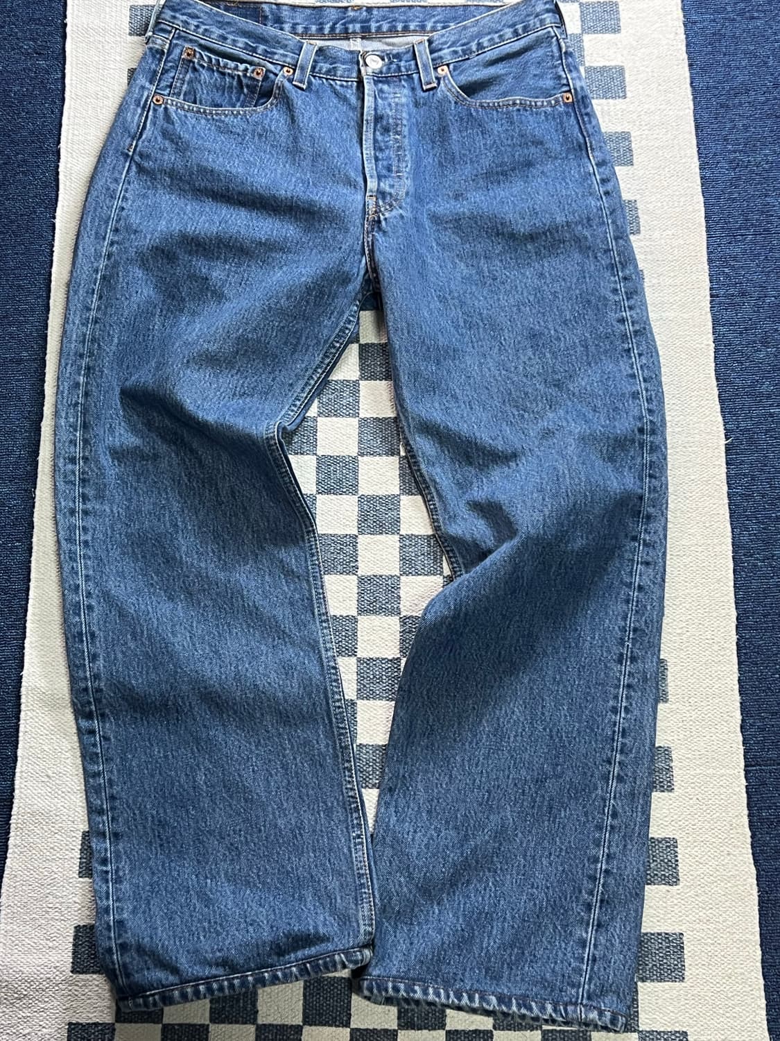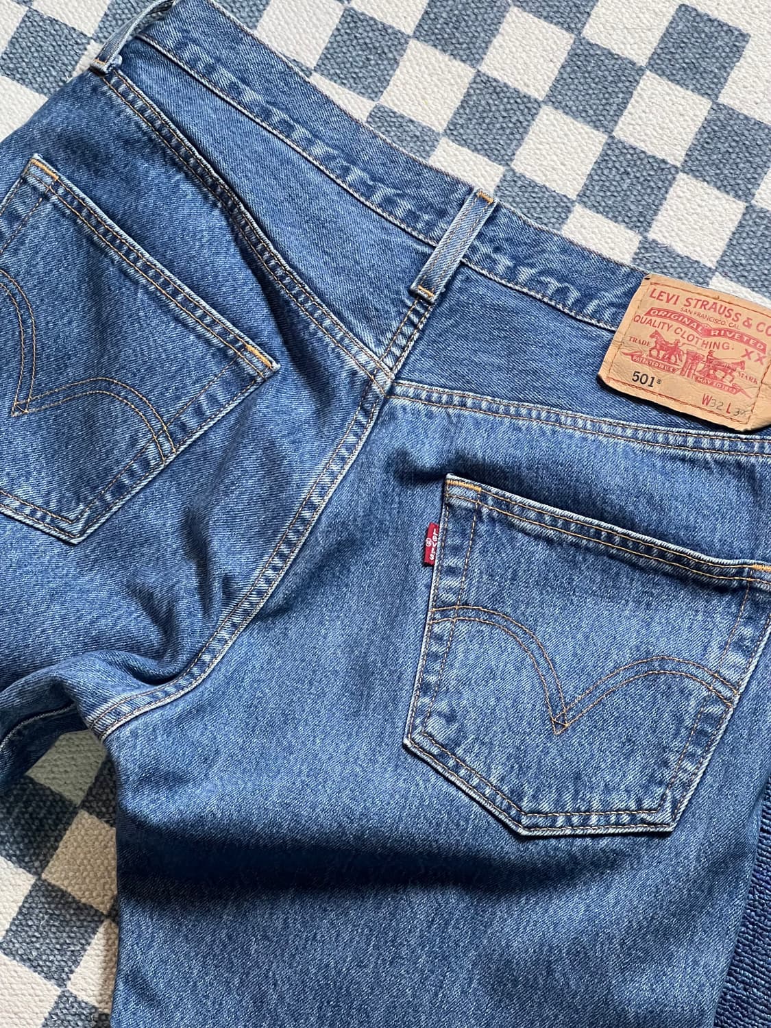 리바이스 501입니다. 표기 사이즈 32/34 지만 실제로는 30/29 사이즈감입니다. 실측 참고해주세요. 사이즈 조언은 어렵습니다. 허리단면 : 40 총장 : 98 허벅지 : 29 밑단 : 22.5