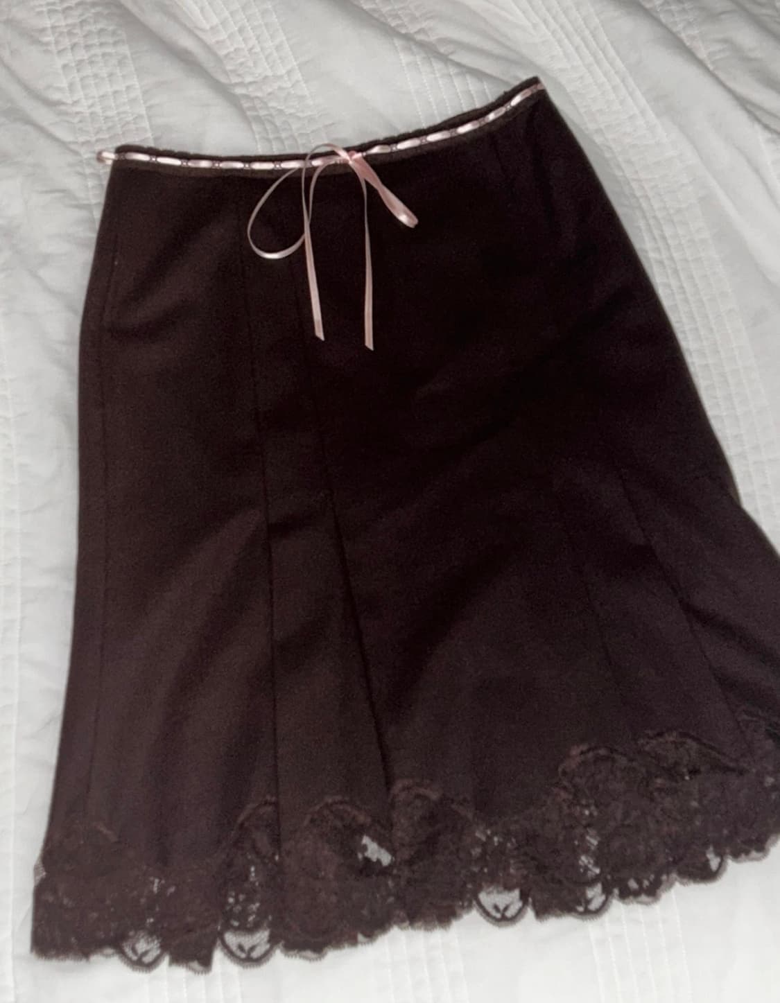 와이즈걸에서 구매한 상태 좋은 미디스커트입니다. 사 진상 약간 어둡게 나왔지만 고동색 정도이고 딱 보면 갈색입니다! 허리에 핑크리본이 너무 러블리하고 끝단 레이스가 너무너무 이뻐요 옷장정리를 위해 어쩔 수 없이 내놓습니다 스타일 맞는 분이 가져가세용 바로 그냥 가을녀자 될수있습니다…🙈🙈 허리단면33 총장 55