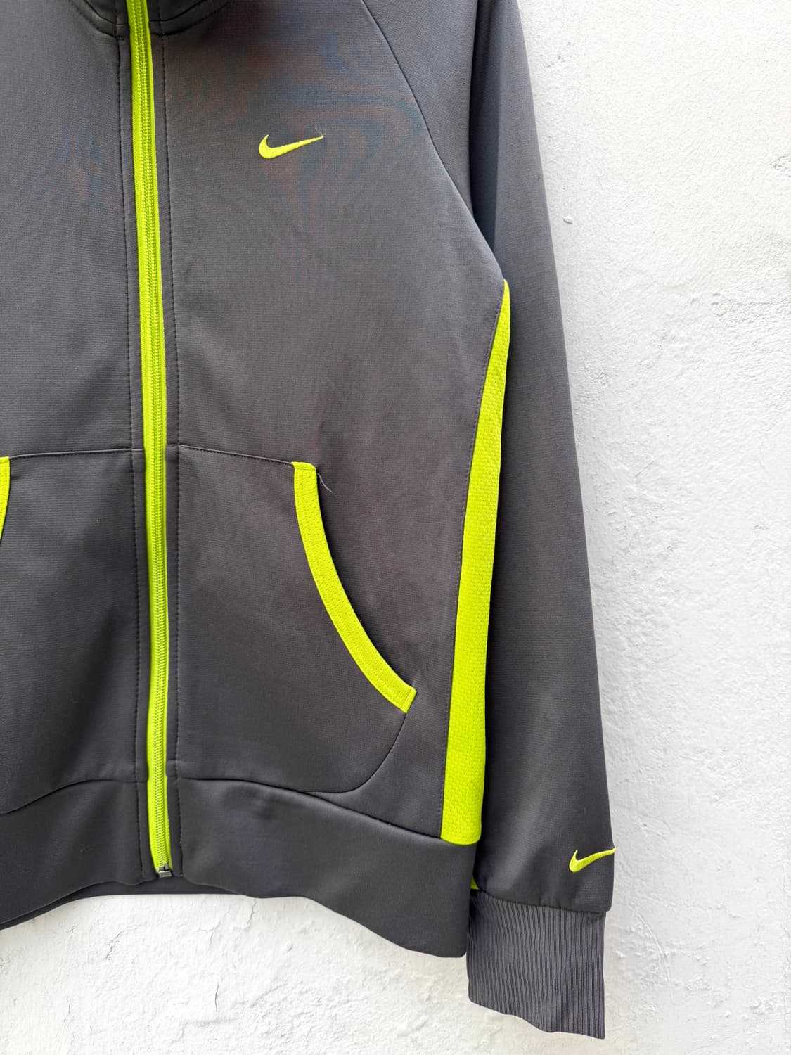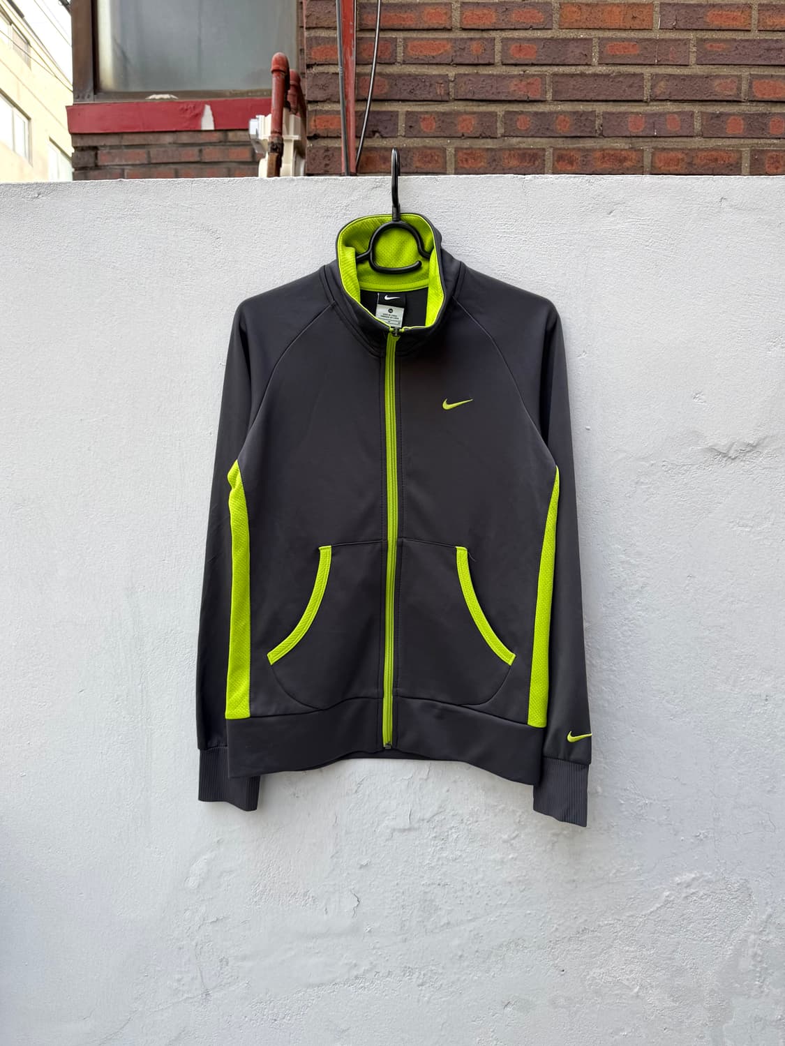Nike Track Jacket +매트한 다크 그레이 베이스에 형광 라임 포인트 배색이 돋조이는 제품이며, 가볍고 탄탄한 폴리 트랙 소재 +좋은 컨디션 유지중 *SIZE - XS 총장 - 가슴단면 - 어깨팔 57cm - 44cm - 63cm #nike #나이키 #나이키져지 #져지 #트랙자켓 #나이키트랙자켓 #스우시 #스우시자켓