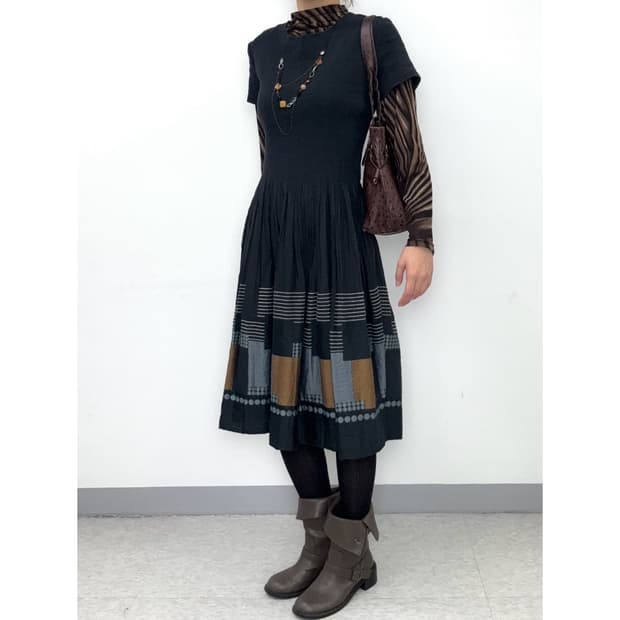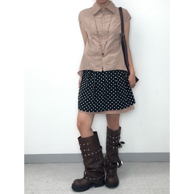 brand simplicite fabric(%) 폴리에스터65 레이온35 size(cm) 허리31 총장53 - 블랙 베이스에 베이지 컬러 포인트가 들어간 캉캉 미디 스커트 - 허리 부근의 스트랩 디테일 - 자연스러운 러플 디자인 model 170cm 55size / 5만 원 이상 구매 시 무료배송