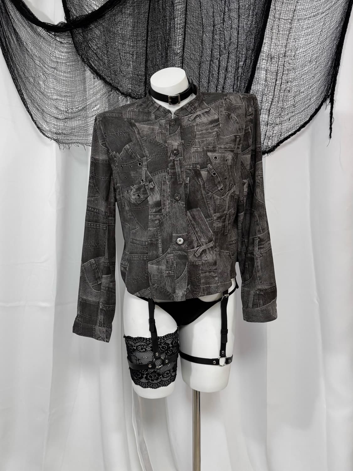 gray cotton open cardigan&lace sleeveles