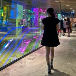 아모멘토 실키 패디드 크롭 점퍼 네이비