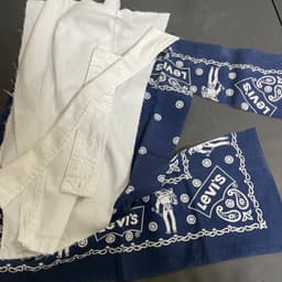 빈티지 리바이스 셔츠를 활용해 제작한 숄더 백입니다. 셔츠의 상단을 본체로, 하단을 포켓과 스트랩으로 제작 기존에 남아 있던 스티치와 사용감, 작은 흔적들은 그대로 남겨 두었습니다. 두번째 사진 얼룩부분은 세탁으로 제거한 상태입니다. 포켓 크기 비교용 핸드폰 기종은 아이폰 15 입니다. • 단 하나만 제작된 제품입니다. • 빈티지 소재 특성상 동일한 재제작은 어렵습니다. • 사용감은 제품의 일부로 간주됩니다. size 가로 60cm 세로 35cm 끈길이 33cm (입구부분 가운데에서 직선으로 잰 길이입니다) Instagram @minn.object https://www.instagram.com/minn.object
