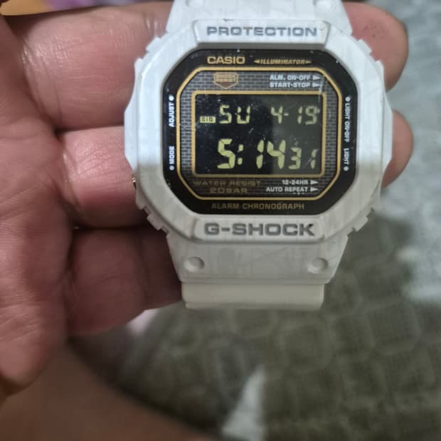 지샥 일본 한정판 모델 DW-5600SG 전체적으로 생활감은 있지만 기능상 문제 없고 최근에 배터리도 교체했습니다. 일본에서 구매했고 이 컬러는 일본 한정판으로 알고 있습니다. 가볍고 데일리로 차기 좋습니다. 지샥이 많아서 아쉽지만 하나씩 팔고 있는데 이 모델은 끝까지 망설이긴 했습니다 :)