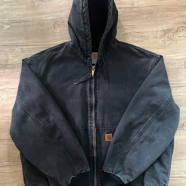 칼하트 j130 모스색상 L사이즈 전체적으로 좋은 상태 유지중이고 가죽탭 목탭도 갈라짐이나 찢어짐없이 깔끔하고 등짝에 작은 스크래치 하나 있고 옆구리와 손목에 핀홀 있습니다 실측 가슴 68cm 기장 70cm 182/82 착샷입니다 참고해주세요