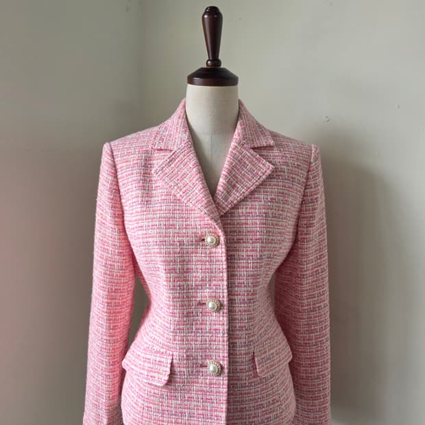 핑크 부클 트위드 자켓