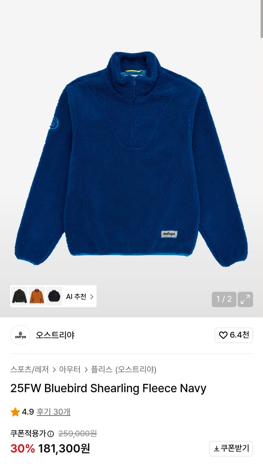 오스트리야 Bluebird Shearling Fleece Navy