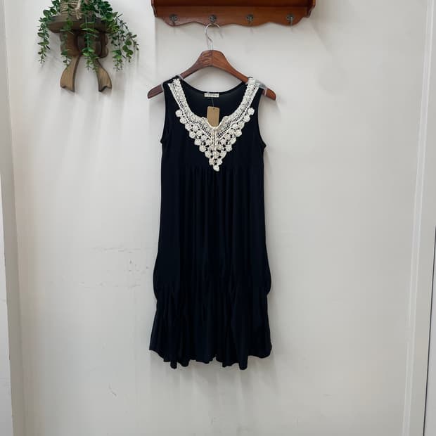 빈티지 블랙 레이스 레이어드 미디 원피스