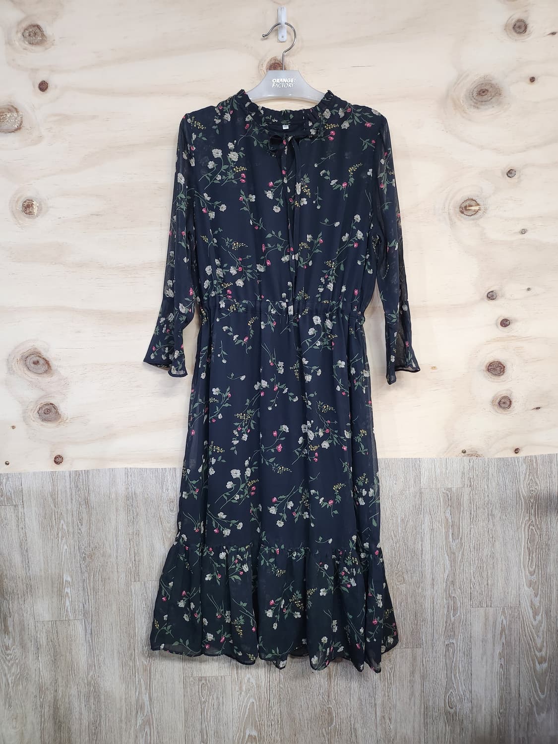 555) 더블 버튼 플리츠포인트 롱 원피스