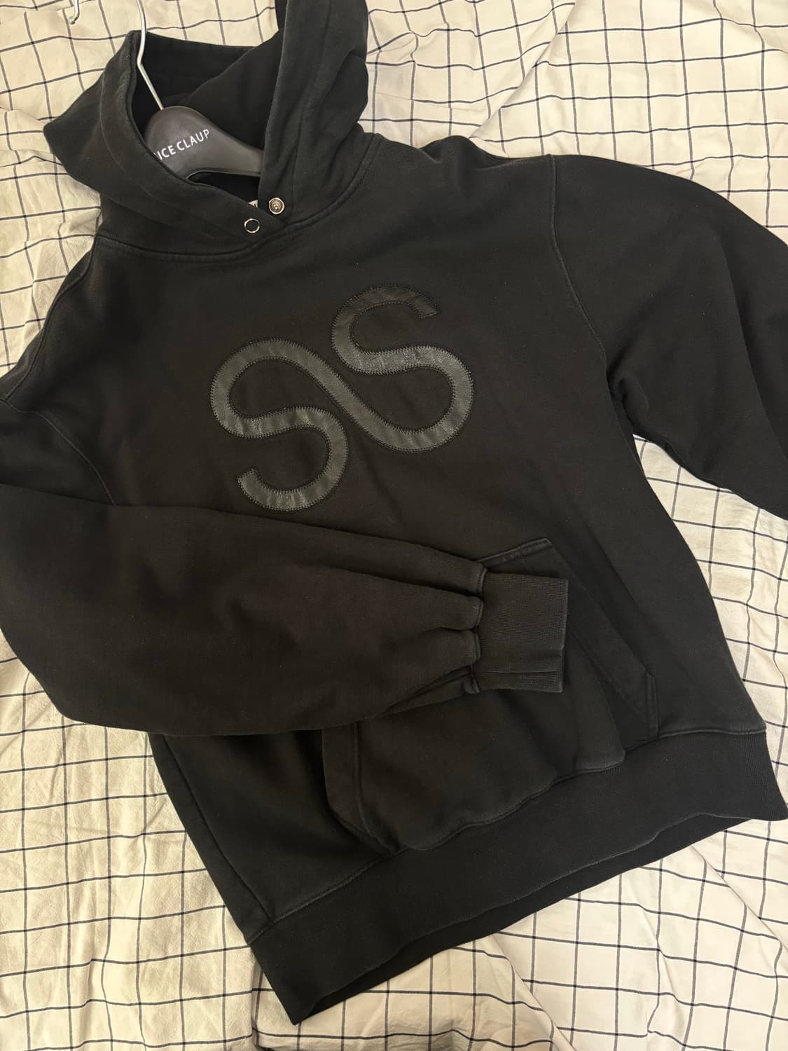 Ssession SS patch hoodie black free size 현재 운영하지 않는 ssession에서 나온 후드 제품 입니다 후드 스트링 대신 단추가 달려 있습니다 패치가 가죽이라 광택감이 있어 패브릭원단과의 대비감이 예뻐요 소매나 아래 시보리 라인처럼 박음질 된 부분들에 블랙 물빠짐 약간 있습니다 이 외의 다른 하자는 없어요 총장 63 가슴 50 팔길이 65