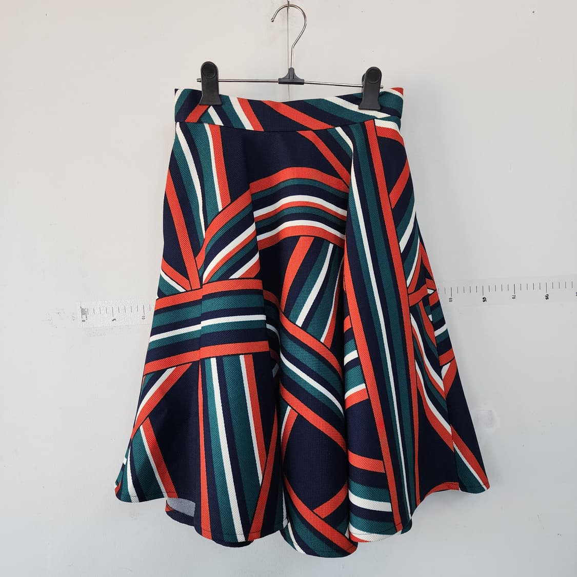 톡톡 튀는 색감의 D&V 패턴 플레어 스커트입니다. 미디 기장이라서 부담없이 착용 가능합니다. 독특한 패턴 덕분에 포인트 주기 좋은 스커트입니다. 문의 없으시면 바로 안전결제해주시면 됩니다! 반품/교환/환불❌️