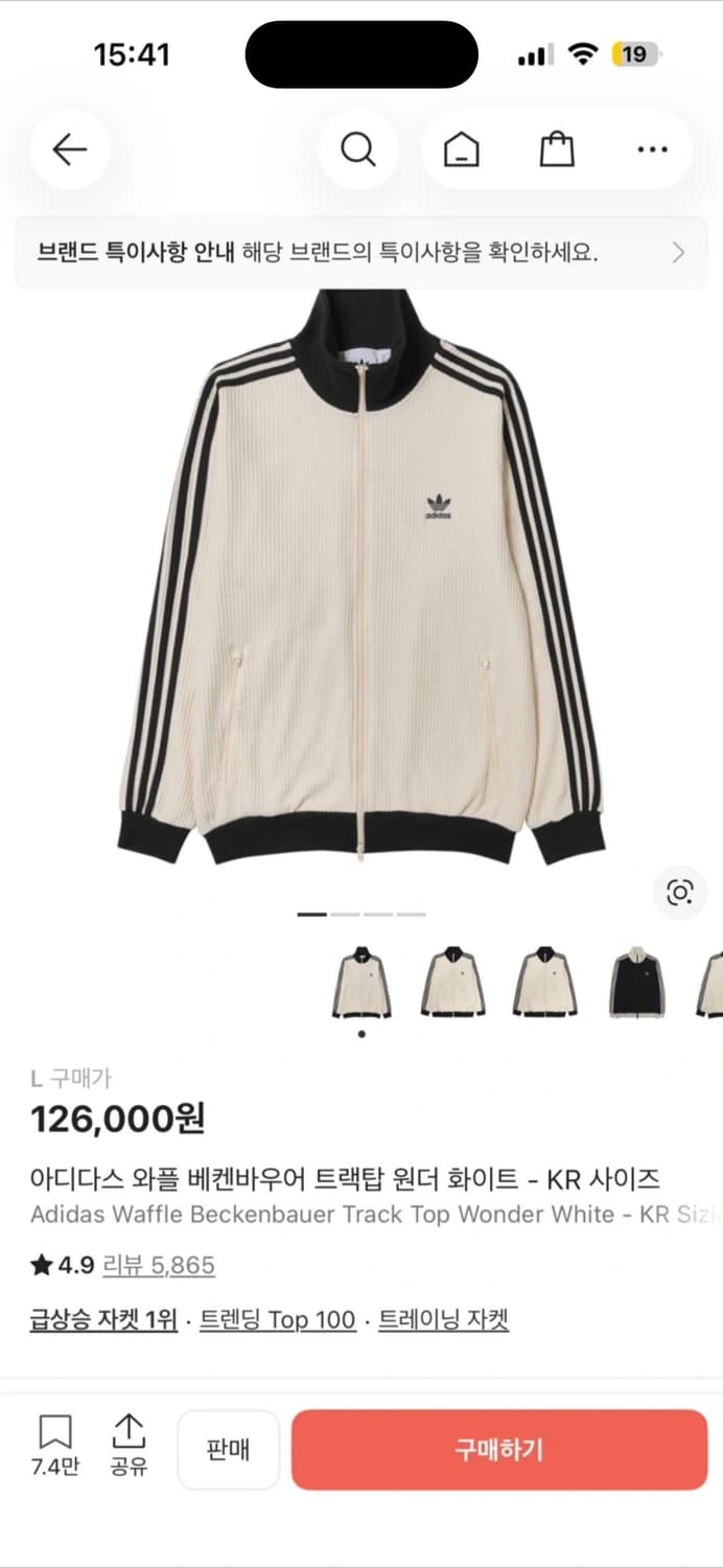 아디다스 와플 베켄바우어 트랙탑 L 사이즈입니다. 원더 화이트 색상이에요, 크림 즉구가는 158000원, 일반배송 126000원 사이즈 미스로 판매합니다