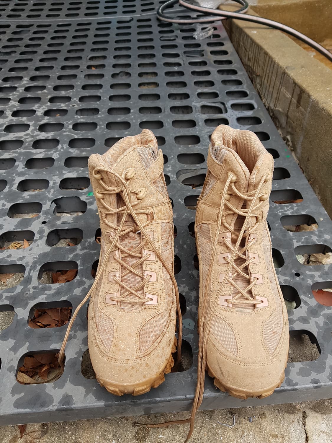 등산할 때 신으려고 샀던 베이지색 등산화입니다. 험하게 신어서 사용감이 좀 있는 편입니다. EU 44사이즈입니다. 등산화/워킹화 겸용으로 신기 좋습니다. 별도 문의 없으시면 바로 안전결제 부탁드려요!