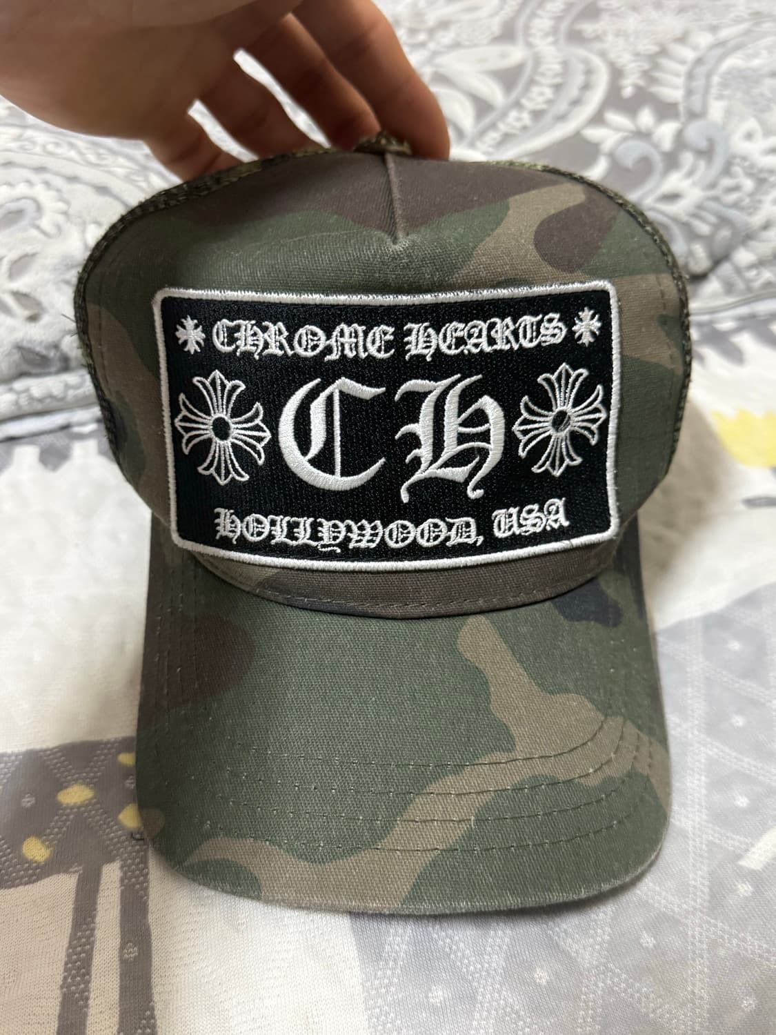 제품명 : 크롬하츠 ch 카모 트러커캡 구매처 : 크림앱에서 구매 사용감 : 사용감은 좀 있으나 애지중지 잘 써서 좋은 상태 유지중 또 세탁 단 1회도 x 크림에서 검수 받고 구매한 제품이기에 가품 걱정xx 100% 정품 가격인하 원하시던 분이 계시는데 5깎아서 올렸으니 이 이하 내릴 생각 없는점 참고 부탁드립니다