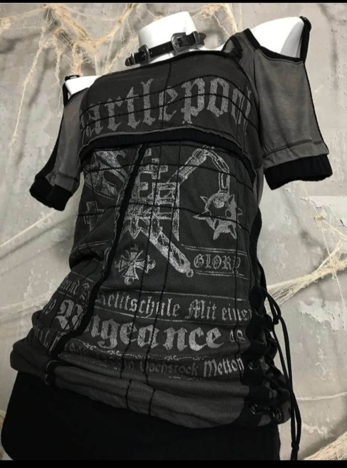 • DIG DEEP 디그딥 십자큐빅 해골자수 후드 긴팔원피스 펑크y2k갸루