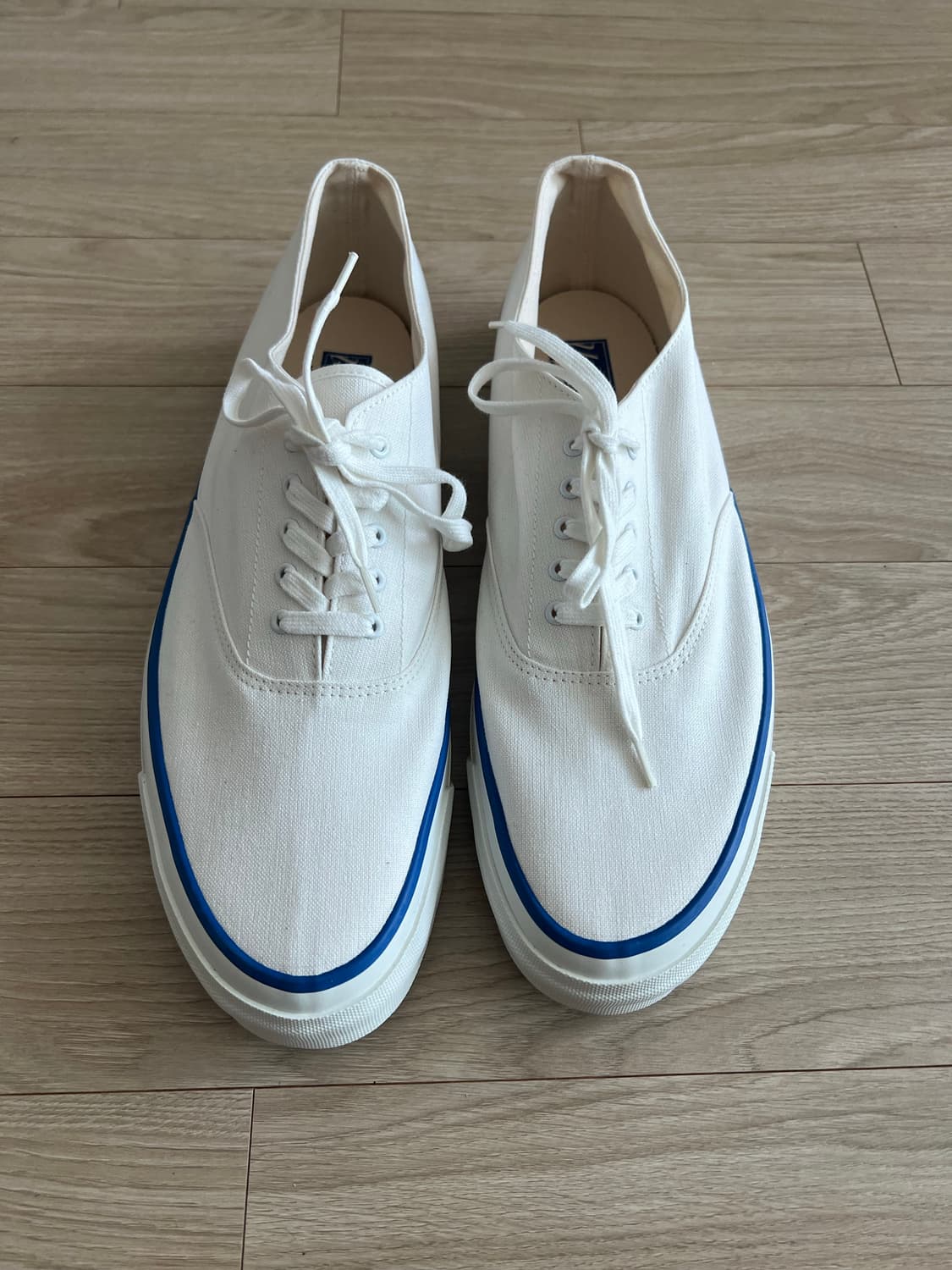 유니페어 덱슈즈 290사이즈입니다. 사이즈미스로 사놓고 한번도 안 신었습니다. 보관하면서 생긴 구겨짐 있으나 신으시면 펴질 정도입니다. 현재 공홈 품절로 알고 있습니다. 여름다가오는데 아주 좋은 아이템이라고 생각합니다. 교환 환불 불가이니 사진 잘 확인 후 구매 부탁드립니다.