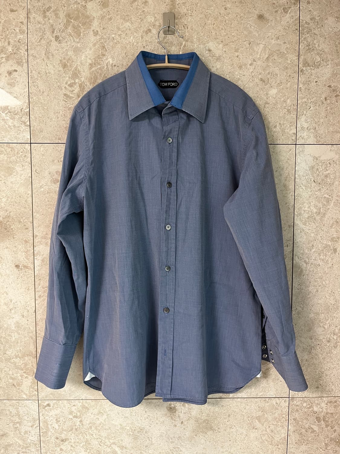 톰포드 셔츠 판매해요 사진에서 보이는 것처럼 깔끔한 디자인의 셔츠입니다 사이즈는 180/96A (41/16)이며, 상세 사이즈는 사진을 참고해주세요 격식 있는 자리나 비즈니스 캐주얼룩에 잘 어울리는 셔츠입니다