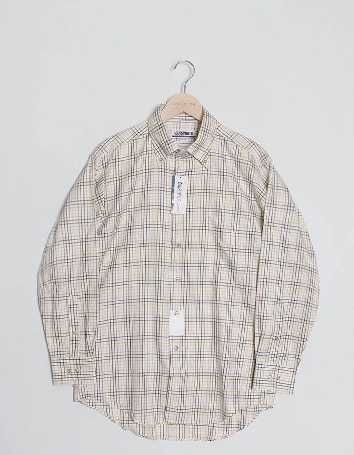 반 스포츠 체크 버튼다운 셔츠입니다. 사이즈 : 실측대비 작은 맨즈 M 레귤러핏 추천드립니다. 소매기장이 짧습니다. 소재 : 면 60% / 폴리에스터 40% 컨디션 : 미사용 새상품입니다. 어깨 : 47cm 가슴 : 55cm 소매 : 58cm 소매+어깨 : 75cm 총기장 : 74/77cm