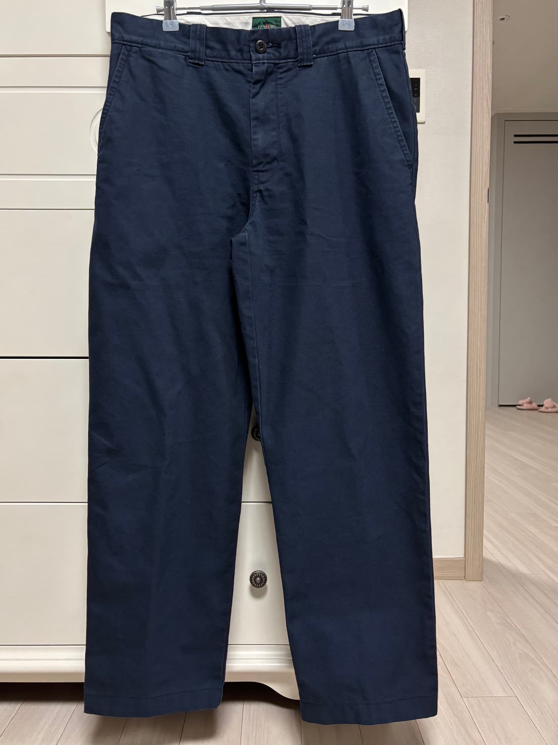 브랜드 : 제이크루 모델명 : Classic trouser in canvas 색상 : 네이비 사이즈 : 31 실측: 허리41.7 허벅지34 밑단21 외측총기장101 보충설명 : 코튼 캔버스 소재의 팬츠입니다. - 일반 면과는 달리 캔버스 소재가 주는 느낌이 좋으며 부드러우면서 탄탄하여 핏이 좋습니다. - 작년 25년 여름 같은상품 2개 구매하여 하나는 입고, 판매하는 이 상품은 보관용으로 있었으나 사이즈 작아져 판매합니다. - 착용횟수 한 두번 안되는 SS급이며 눈꼽 만큼의 오염도 없는 컨디션입니다. - 워싱이 살짝 되어져 나온 상품이며 기장만 말아박기 101cm로 수선 되었습니다.