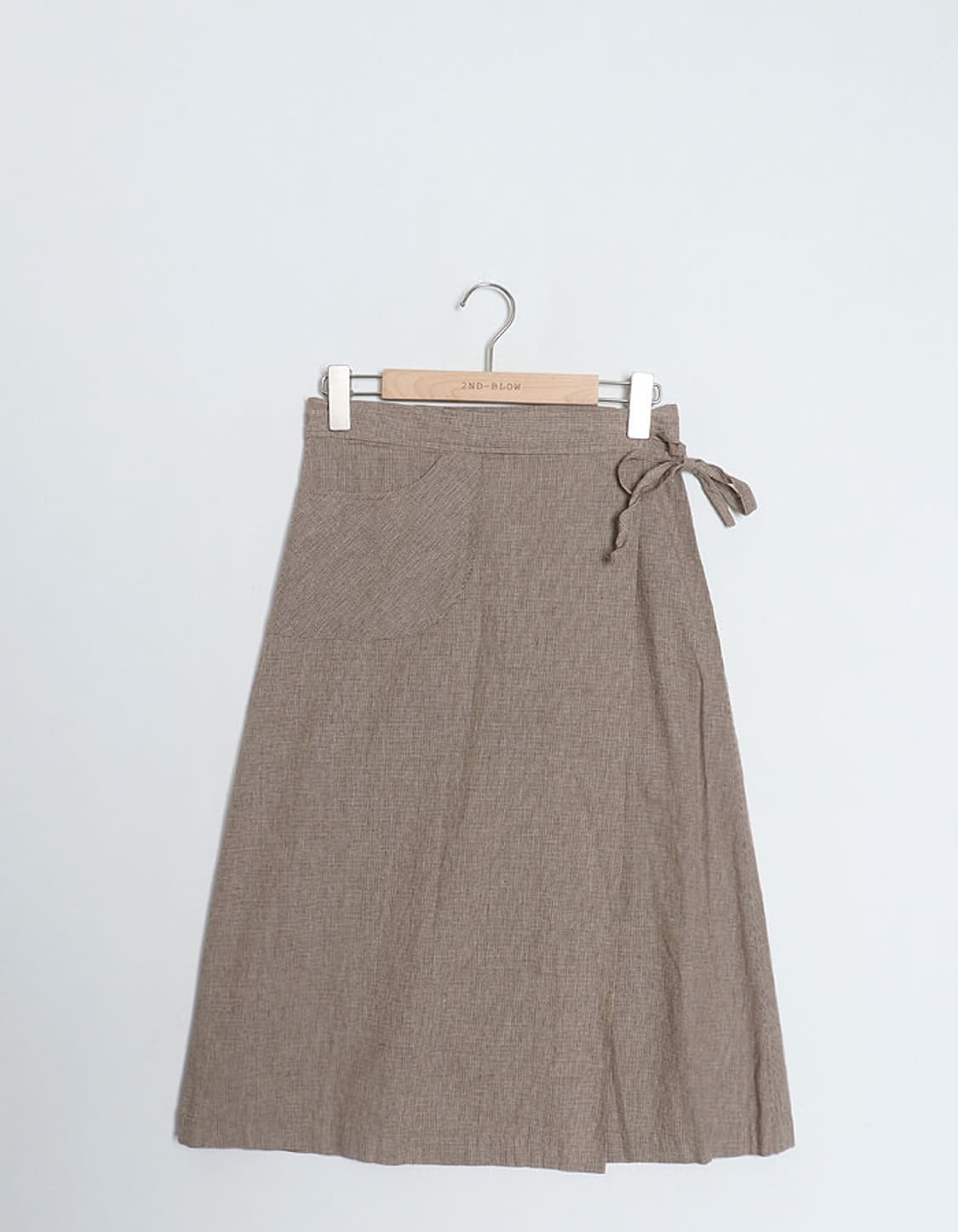 스튜디오 클립 랩스커트입니다. - 얇은 리넨 혼용 면원단 - 원 포켓 / 무릎 기장에 A 실루엣 사이즈 : 실측 26~27인치 추천드립니다. 소재 : 면 50% / 리넨 50% 컨디션 : 전체적 좋은 컨디션입니다. 허리 : 35cm 27.5inch / 총기장 : 71cm
