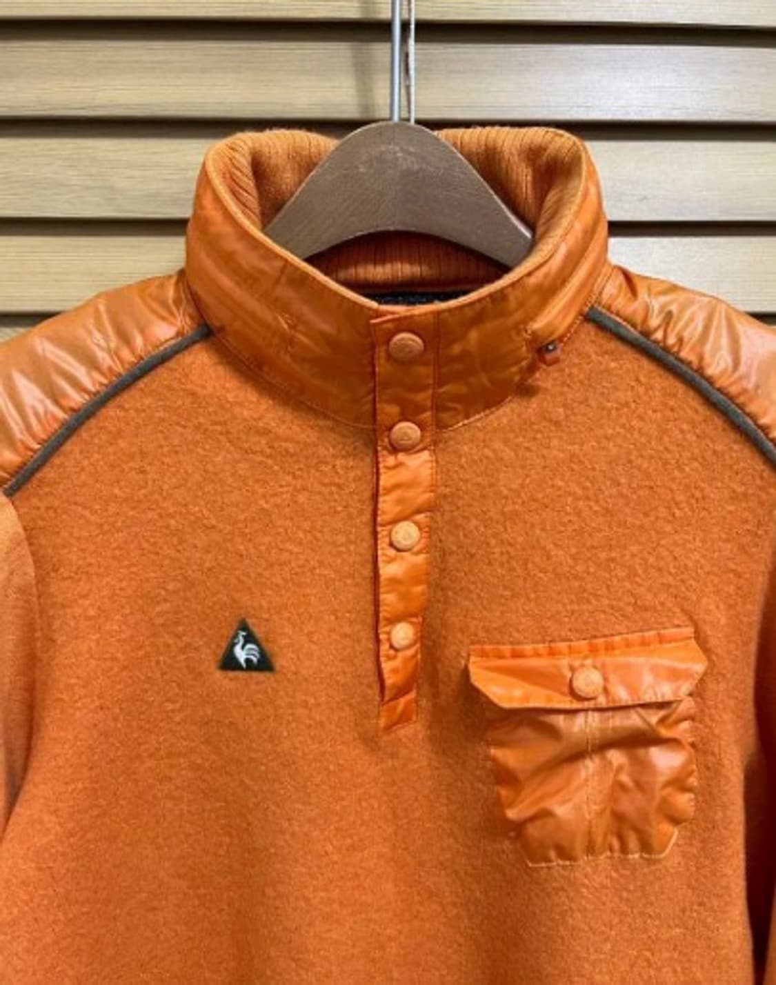 르꼬끄골프여성집업 - 컬러: 오렌지 - 사이즈: 95 - 겉감: 울70혼방 간절기울소재 실측사이즈(cm) 가슴단면: 46 어깨: 41 소매;65 총장;63 사용감별로없어요