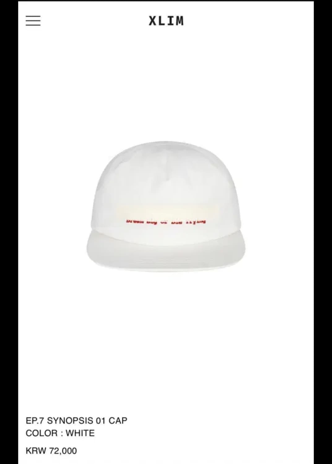 엑슬림 EP.7 SYNOPSIS 01 CAP 화이트입니다. 지금 구하려고 해도 매물이 없는 상품이고 출시 되자마자 구매한 후 한번도 착용안하고 보관해두었습니다. 남녀 공용입니다.