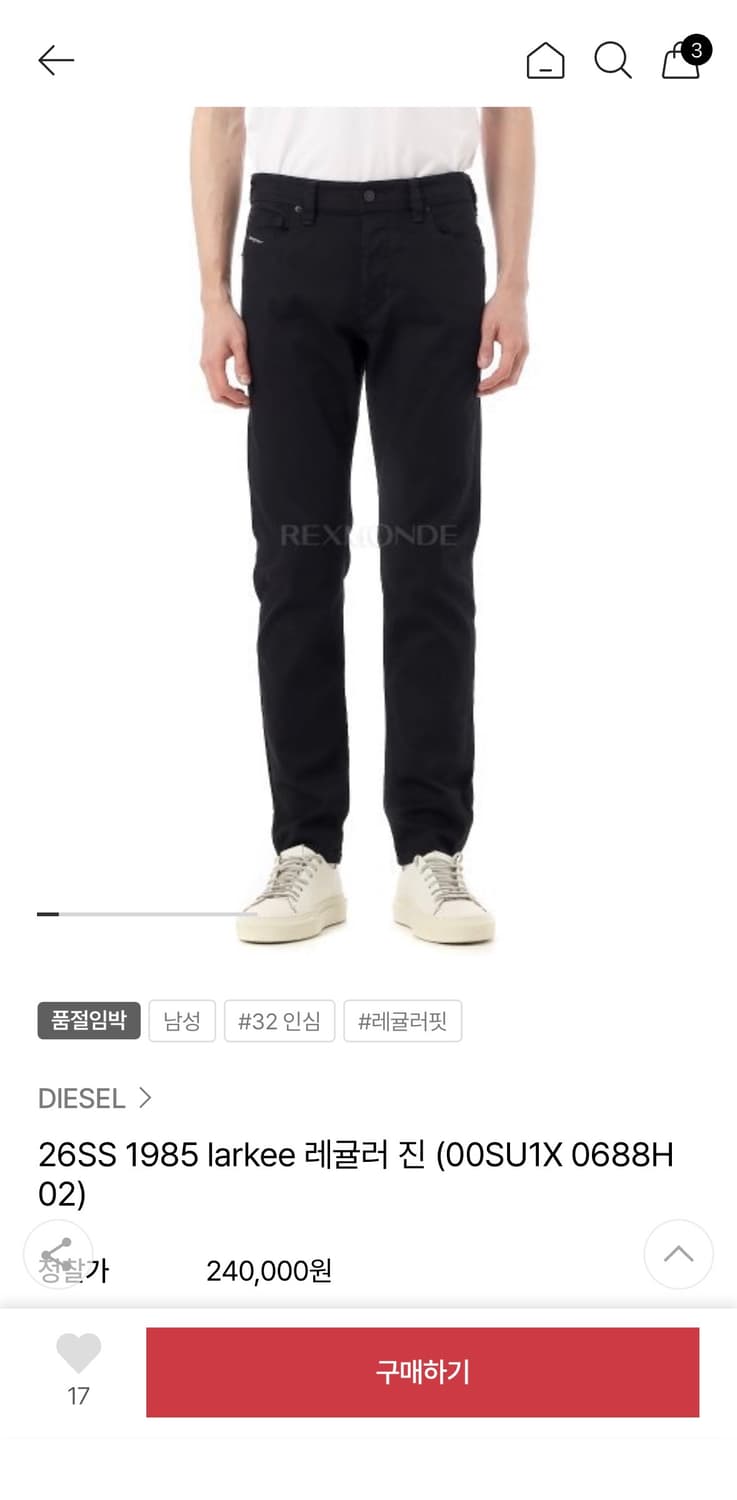 디젤 26ss 1985 larkee 레귤러 진 (30인치)