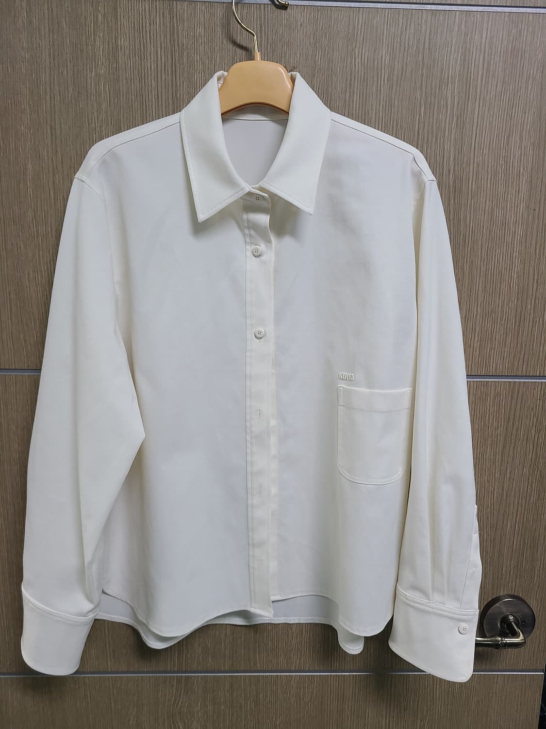 구호 긴팔 셔츠입니다. 가슴 쪽에 작은 포켓이 포인트로 있습니다. 무난한 디자인이라 어디든 잘 어울립니다. 문의 없으시면 바로 안전결제해주시면 됩니다! 가단53 총장64