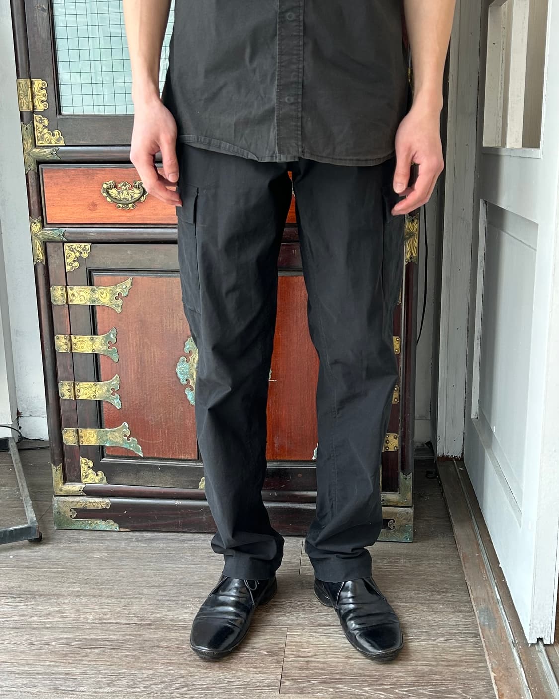 이세이 미야케 코튼 카고 팬츠 Size : 2 Price : ₩ 165,000 Condition : 8/10 Material : 코튼 98%, 폴리우레탄 2% 이세이 미야케(Issey Miyake)는 디자이너 이세이 미야케가 전개하여 실험적인 소재와 기능적인 디자인을 통해 독창적인 실루엣을 제시하는 브랜드입니다. 본 제품은 블랙 컬러의 탄탄한 코튼 원단으로 제작되었으며, 스트레이트하게 떨어지는 실루엣에 카고 팬츠 디자인을 더한 형태로, 과하지 않은 볼륨감과 깔끔한 실루엣이 인상적입니다. 양측 사이드에 배치된 플랩 카고 포켓으로 실용성을 높였으며, 군더더기 없는 패턴과 자연스럽게 떨어지는 라인이 다양한 스타일링에 활용도를 더해줍니다. 실측은 마지막 사진 참조 부탁드립니다. 세컨핸드 특성상 교환, 환불은 불가합니다. 가격협상 가능하오니 부담없이 문의주세요.