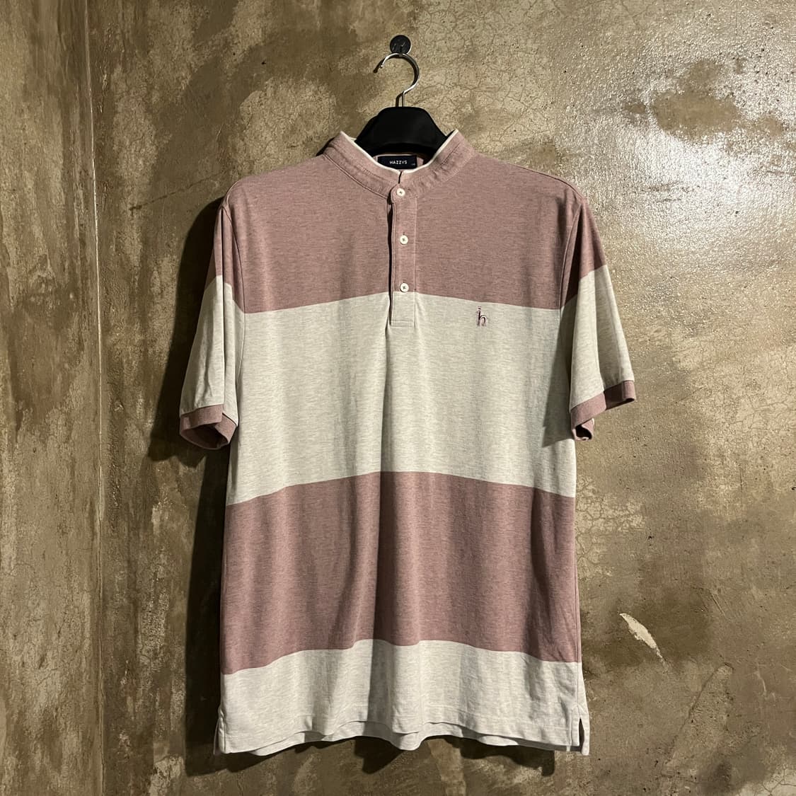 • 100 헤지스 스트라이프 배색 반팔 0413D