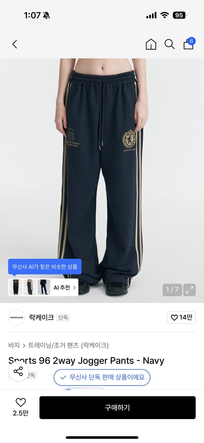 락케이크(ROCKCAKE) 사이드 레이스 와이드 트레이닝 팬츠