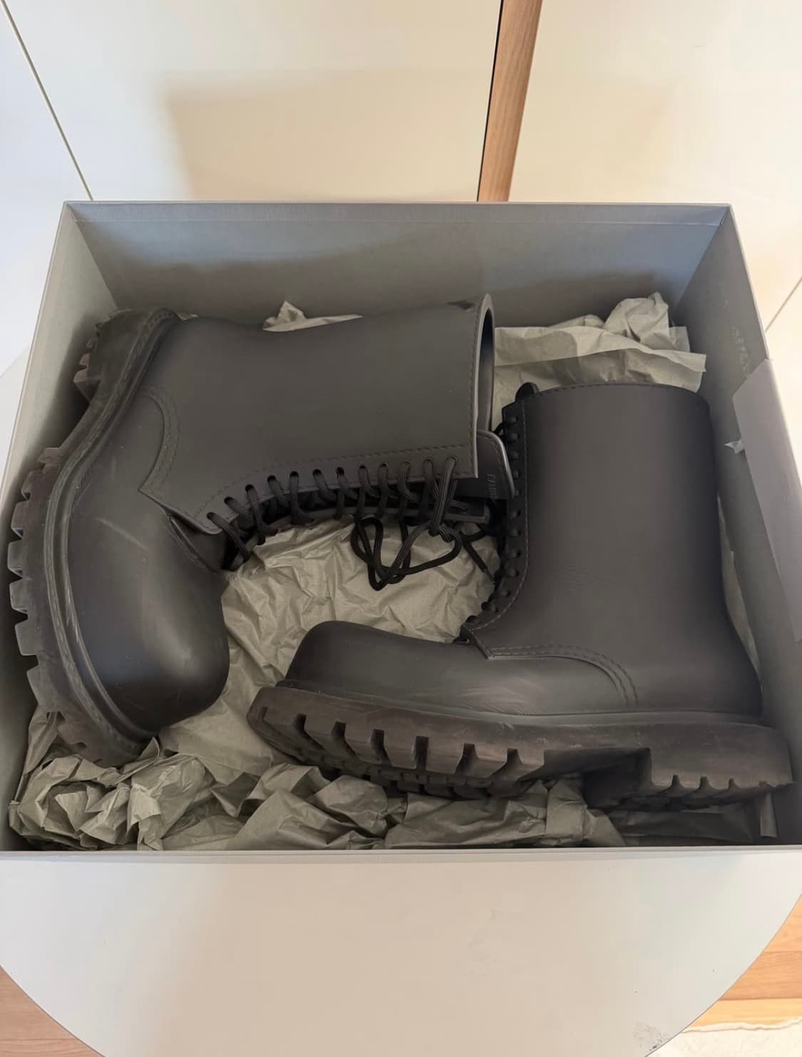 발렌시아가 스테로이드 부츠 제품 소재 특성상 스크래치 밑창 흠집 좀 있습니다.