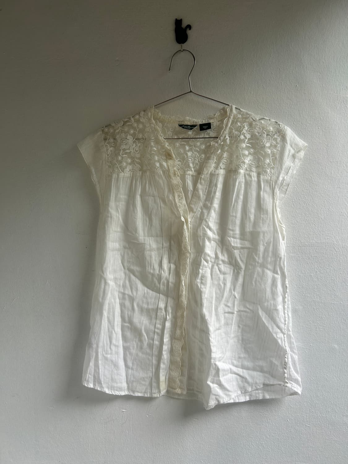 엘엘빈 펀칭 레이스 슬리브리스 블라우스